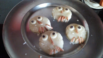 Now make small balls for each eyes and also add choco chips on each eyes.