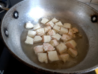 When its boiled we add cheena pieces and boil five minutes in full flame now sim for fifteen mins.
