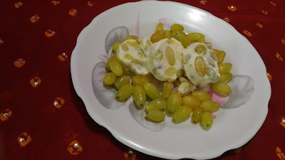 Whisk the thick curd and add in the milk,add grapes and mix well.